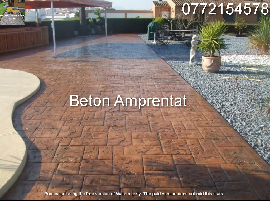 Betonul amprentat aduce îmbunătățiri estetice uimitoare, fiind folosit îndeosebi pentru: terase, alei, zone pietonale, intrări în curte sau garaj etc.